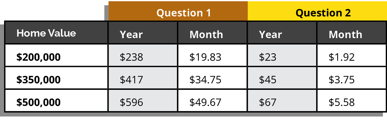 $3.75 per month on the same home (Question 2 can only pass if Question 1 passes)